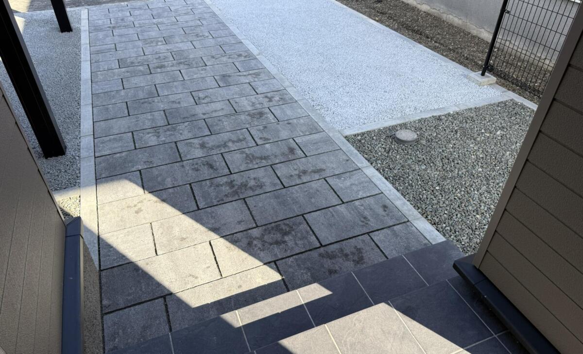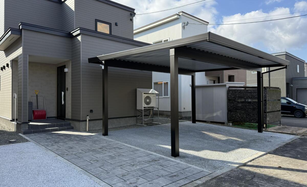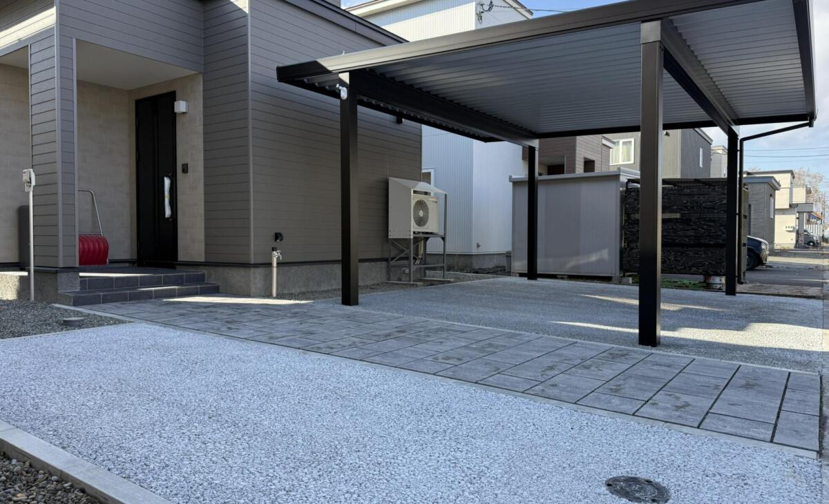 シンプルモダンカーヤードとバックヤードガーデン | 苫小牧エクステリア・外構工事・庭・カーポート・造園 道南工業